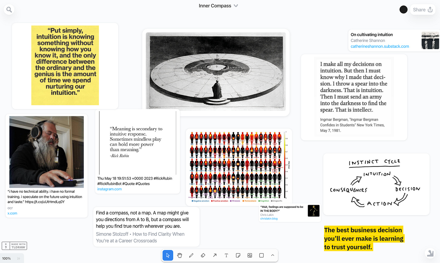 Sublime is my favorite tool for creative thinking and cultivating my taste. I use it daily (literally) to collect references, images, quotes, articles, and ideas that move me, which I can later use in my life and work.